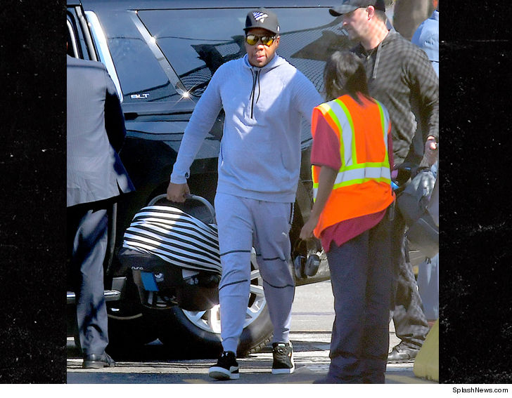 Beyonce and Jay-Z's twins are barely 4 months old but they're already moving like royalty. The Carters arrived at a New York heliport Wednesday with their entire brood in tow ... big sis Blue Ivy was there, along with Rumi and Sir. It's the first time the whole fam's been seen together since the twins arrived in June.